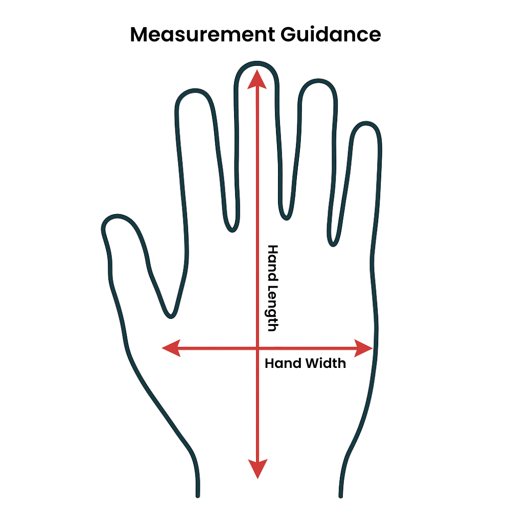 To measure length please measure from the tip of your middle finger down to the palm of your hand.