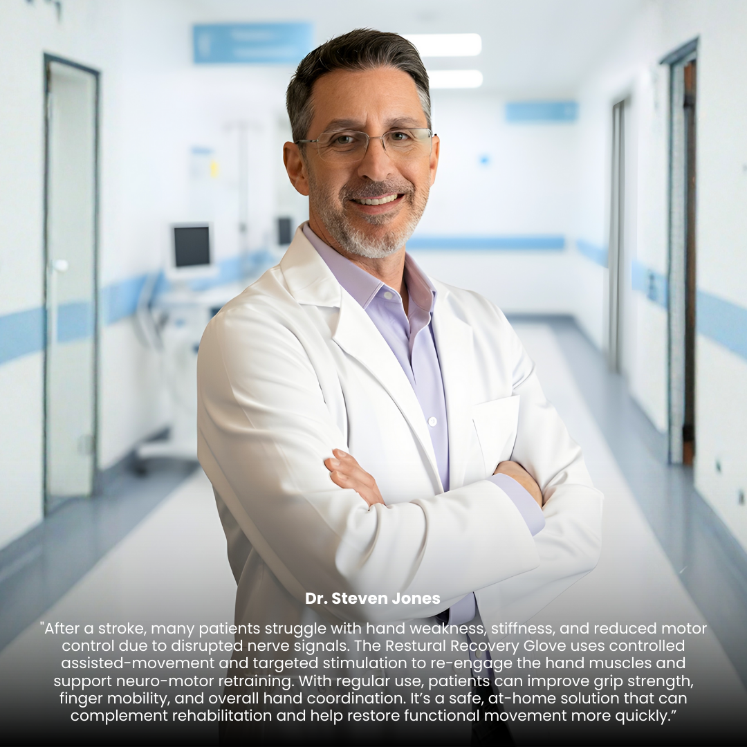 Restural uses natural & consistent movements to rebuild the core muscle fibres in your hand & fingers. In doing so our glove allows you to naturally rebuild your strength over time without needing steroid injections, surgeries or any form of pills.